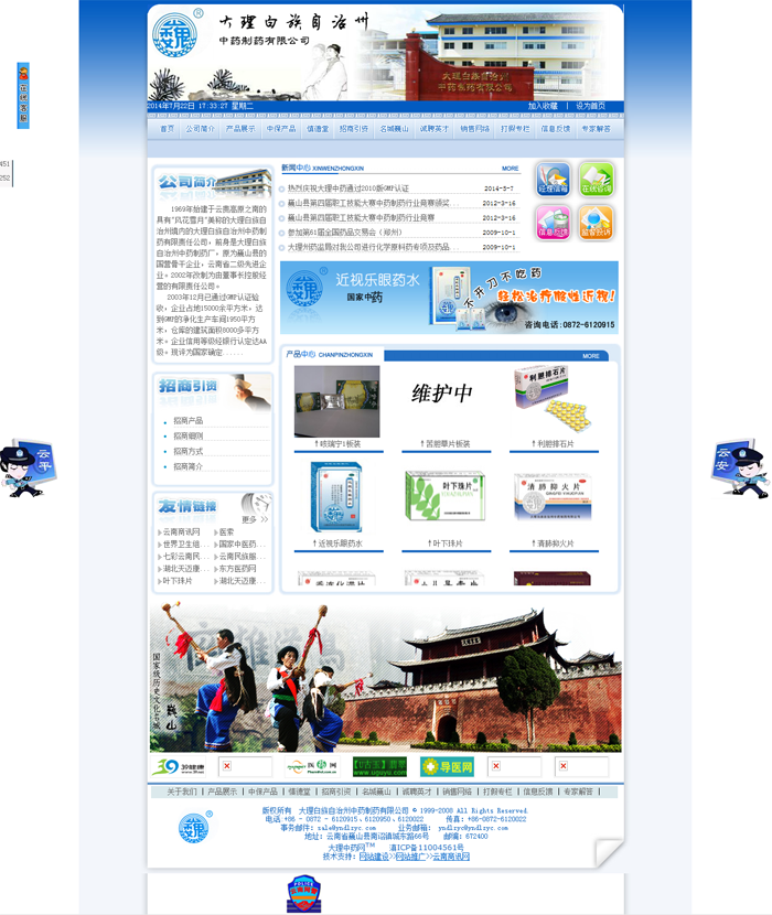 1969 年始建于云貴高原之南的具有 “ 風花雪月 ” 美稱的大理白族自治州境內(nèi)的大理白族自治州中藥制藥有限公司,前身是大理白族自治州中藥制藥廠,原為巍山縣的國營骨干企業(yè),云南省二級先進企業(yè)。2002 年改制為由董事長控股經(jīng)營的有限責任公司。
