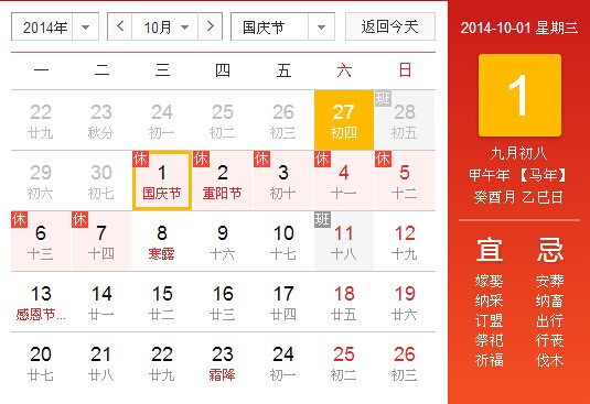 根據(jù)《國務(wù)院辦公廳關(guān)于2014年國慶節(jié)放假安排的通知》,現(xiàn)將2014年國慶節(jié)放假日期安排通知如下: